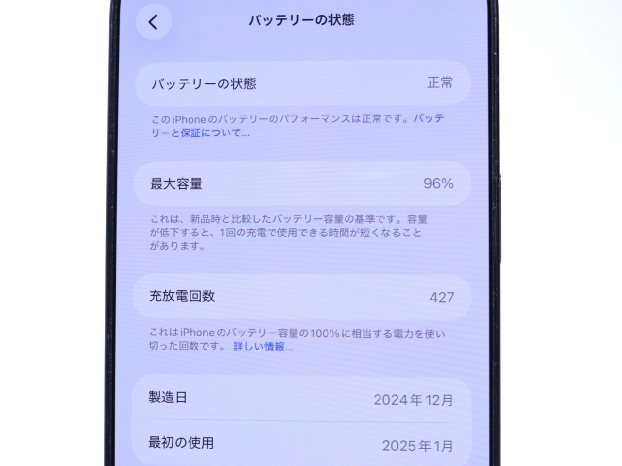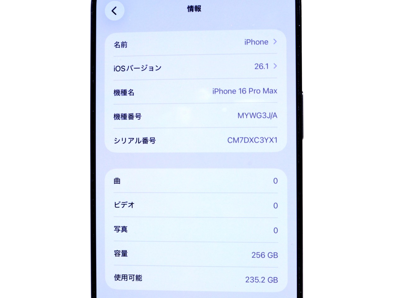 APPLE [USED]u059588 iPhone16 Pro Max 256GB SIMフリー [ブラックチタニウム] の 商品仕様1: