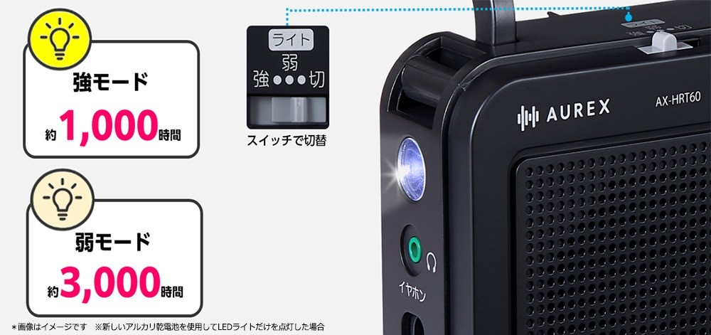 「声くっきり機能」を搭載したFM/AM/ラジオNIKKEI(短波放送)が聴けるLEDライト付きホームラジオ 長時間LEDライト搭載