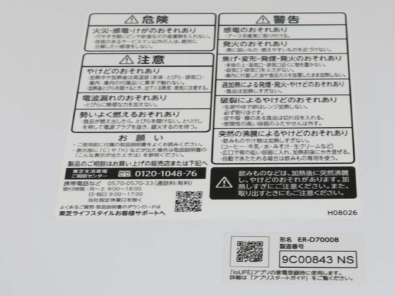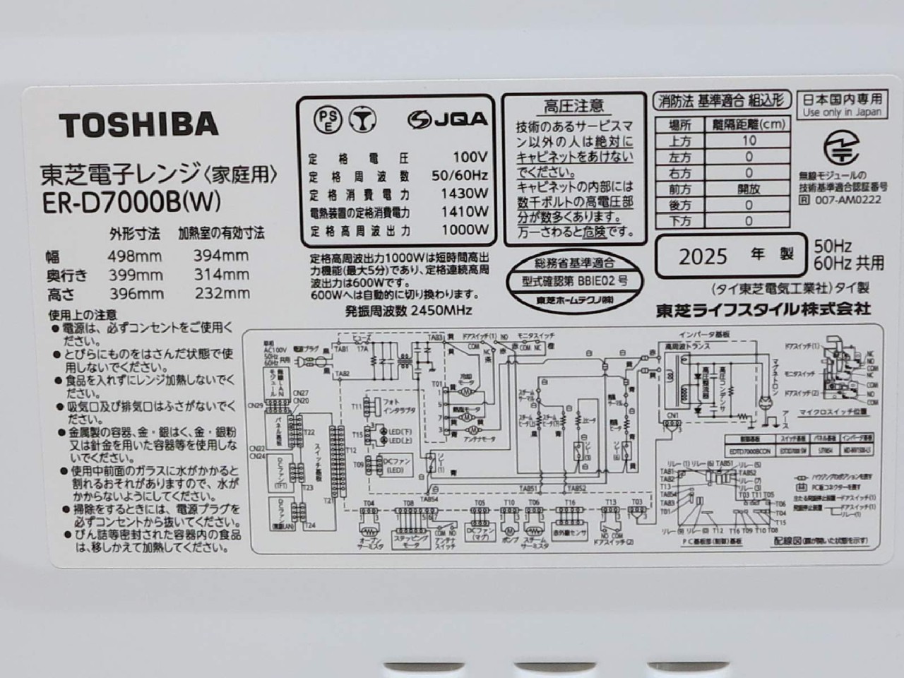 TOSHIBA [USED]u059628 ER-D7000B-W の 商品仕様1: