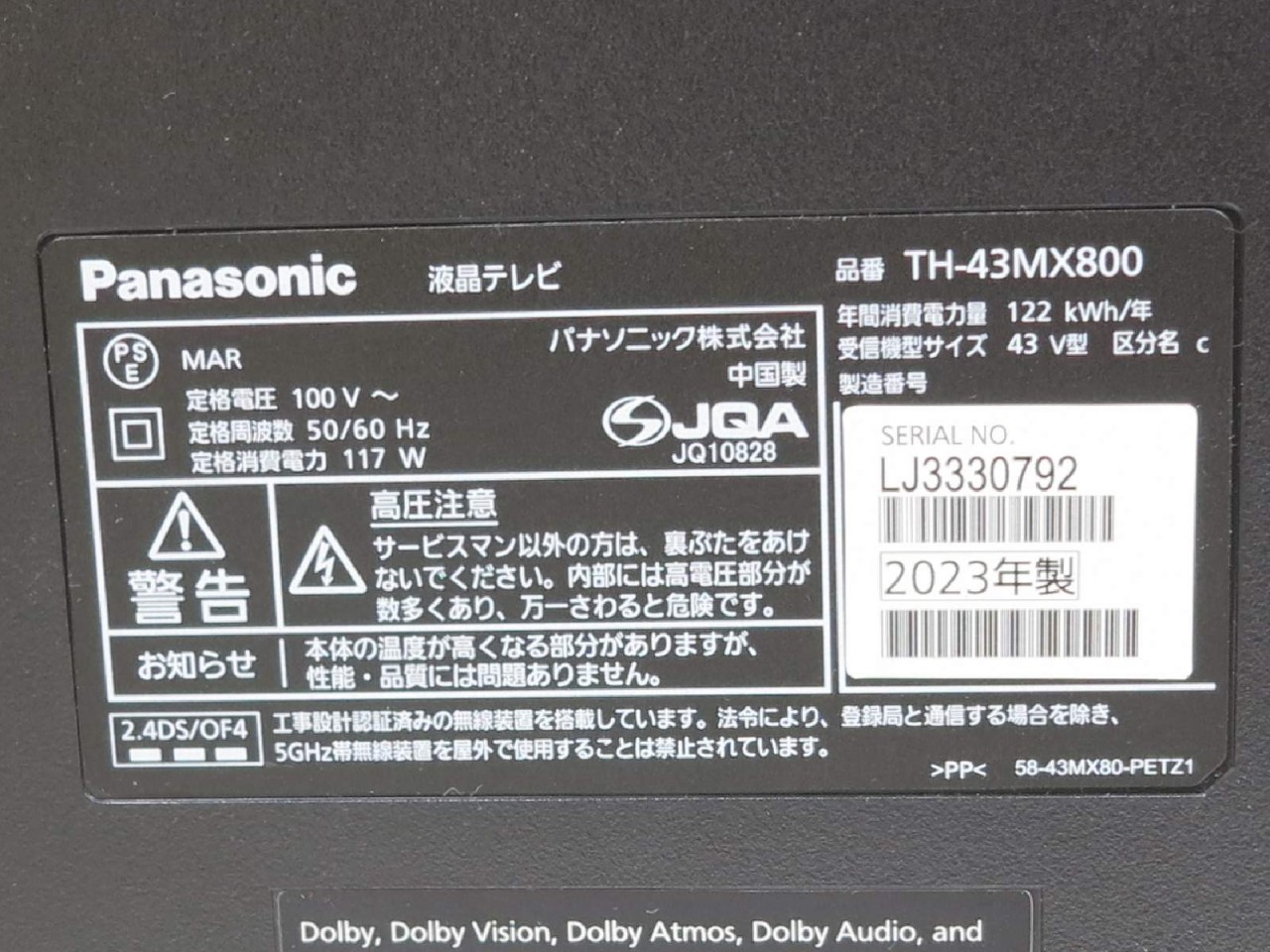 Panasonic [USED]u059650 TH-43MX800 (外箱他機種流用) の 商品仕様1: