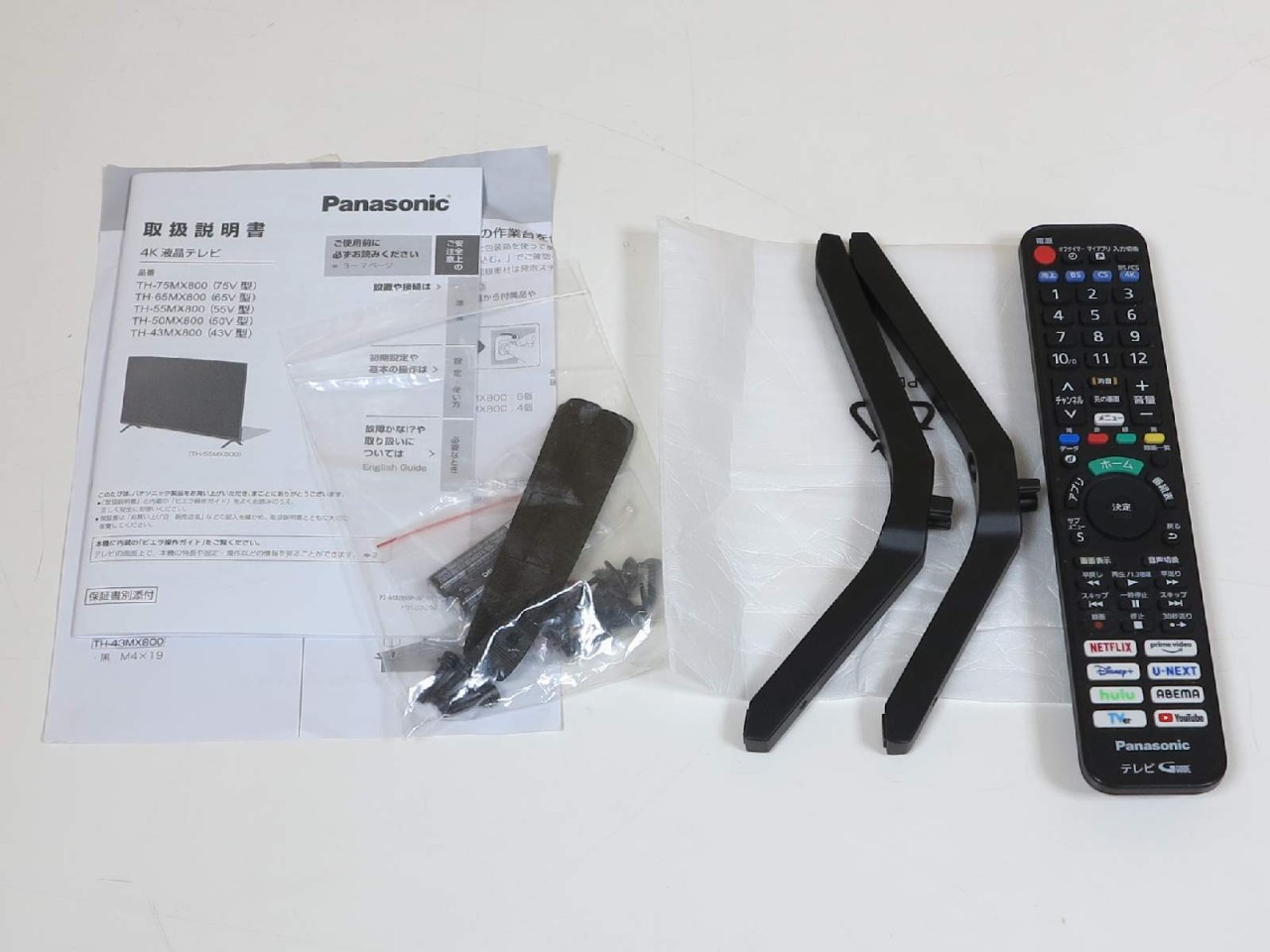 ■スタンド足(左右1SET) ■専用リモコン ■取扱説明書類 ■外箱&緩衝材類