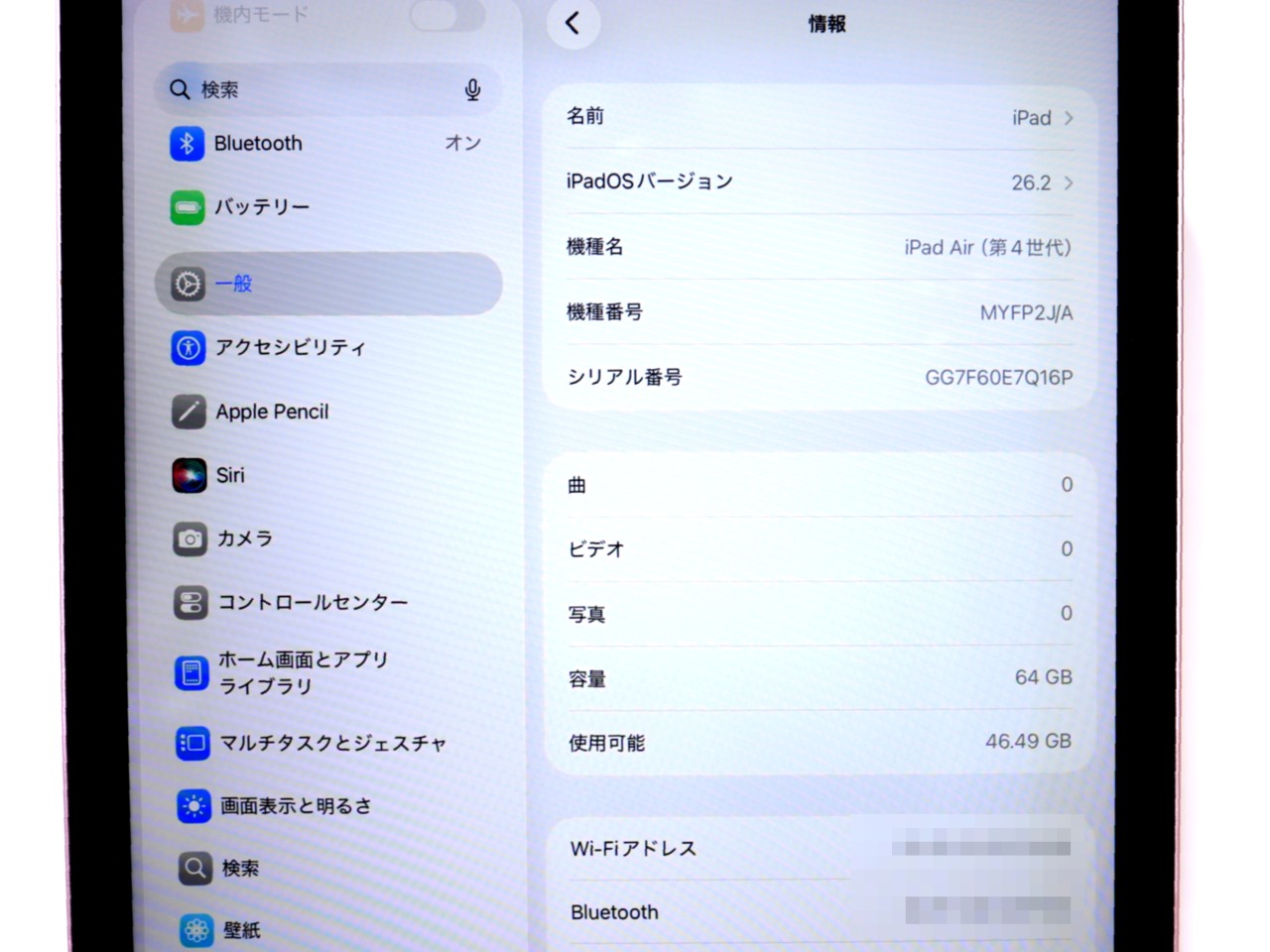 APPLE [USED]u059694 iPad Air 10.9インチ 第4世代 Wi-Fi 64GB 2020年秋モデル MYFP2J/A [ローズゴールド] の 商品仕様1: