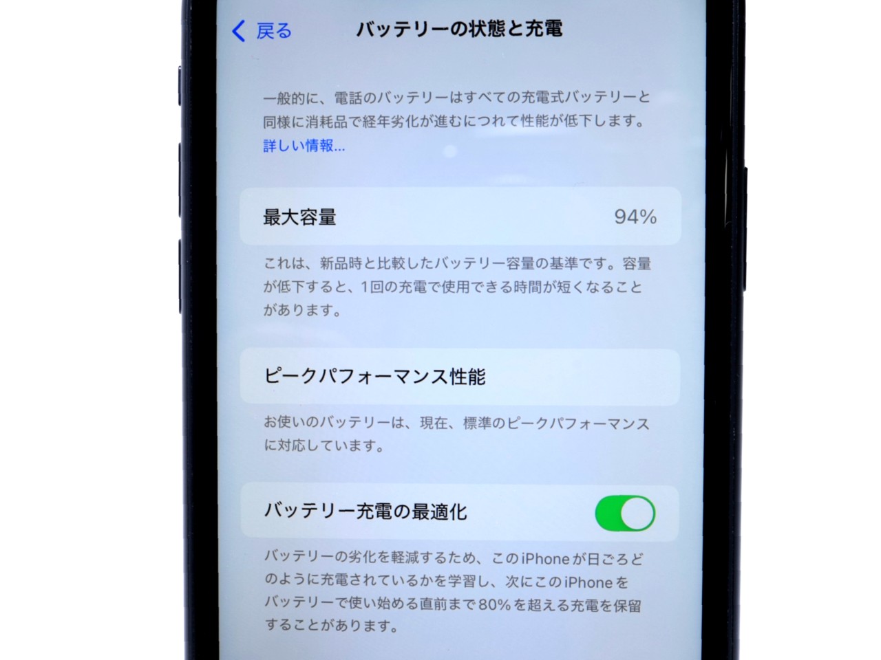 バッテリー最大容量表示=94%です。