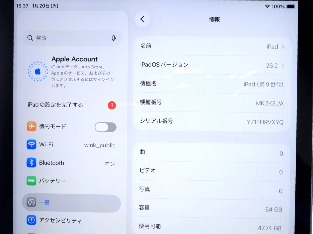 APPLE [USED]u059731 iPad 10.2inch 9th MK2K3J/A の 商品仕様1: