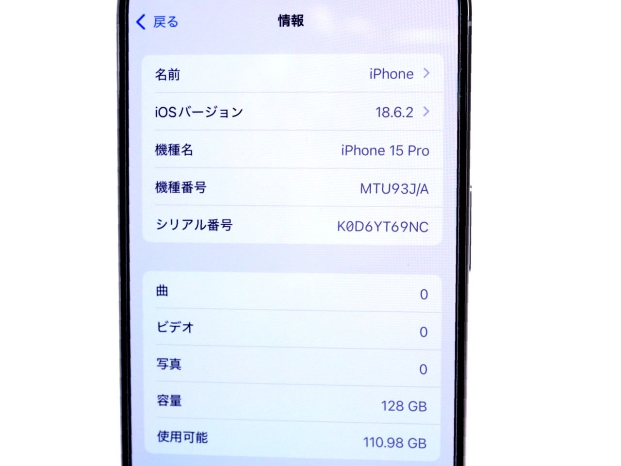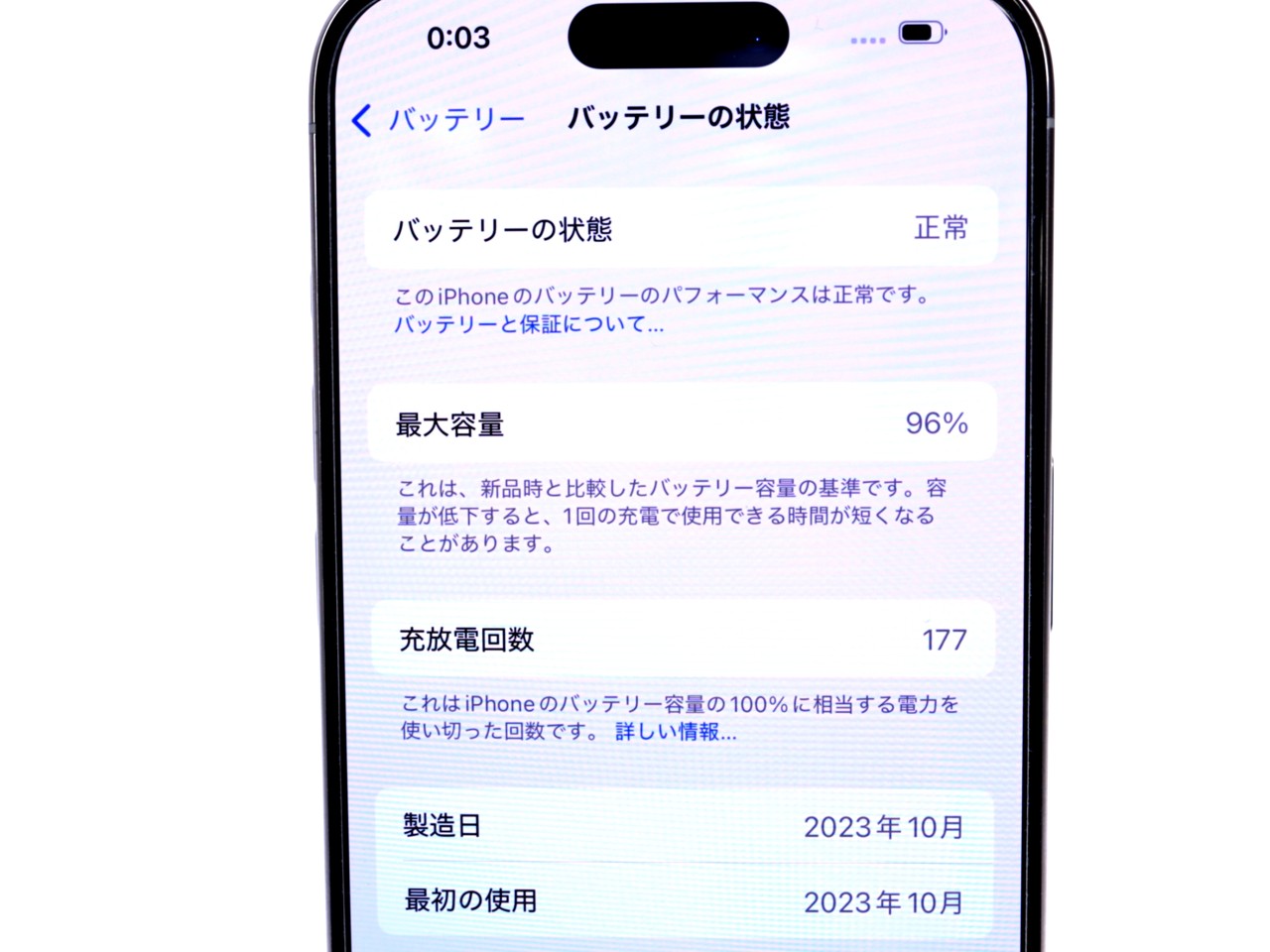 APPLE [USED]u059764 iPhone15 Pro 128GB SIMフリー [ナチュラルチタニウム] の 商品仕様1: