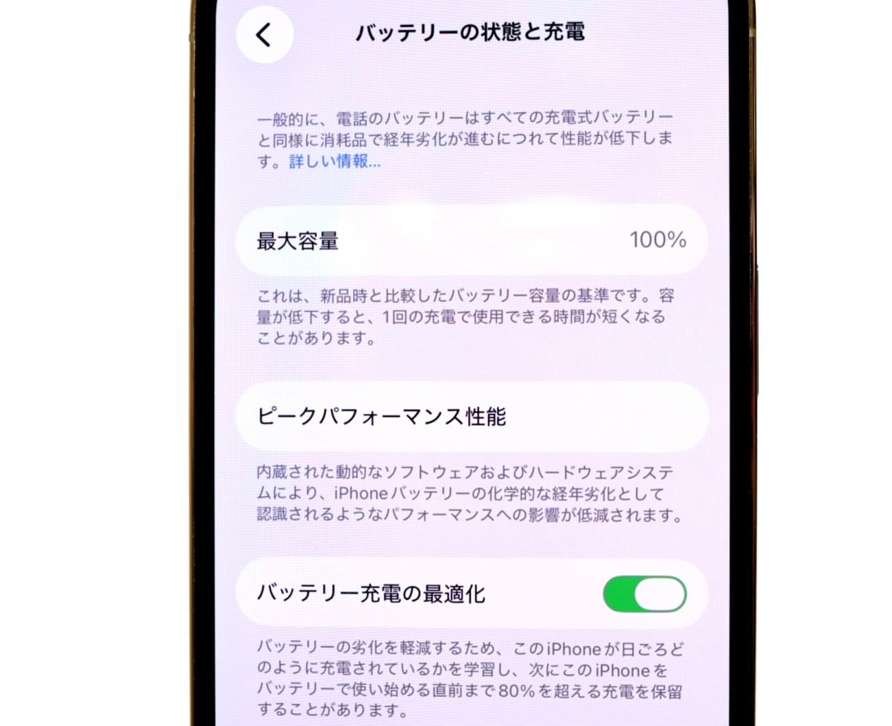 バッテリー最大容量=100% (バッテリー、カメラの修理履歴あり)