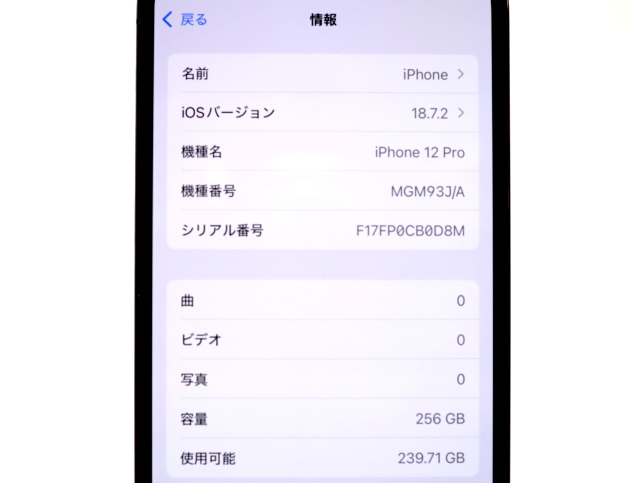 APPLE [USED]u059835 iPhone12 Pro 256GB SIMフリー [グラファイト] の 商品仕様1: