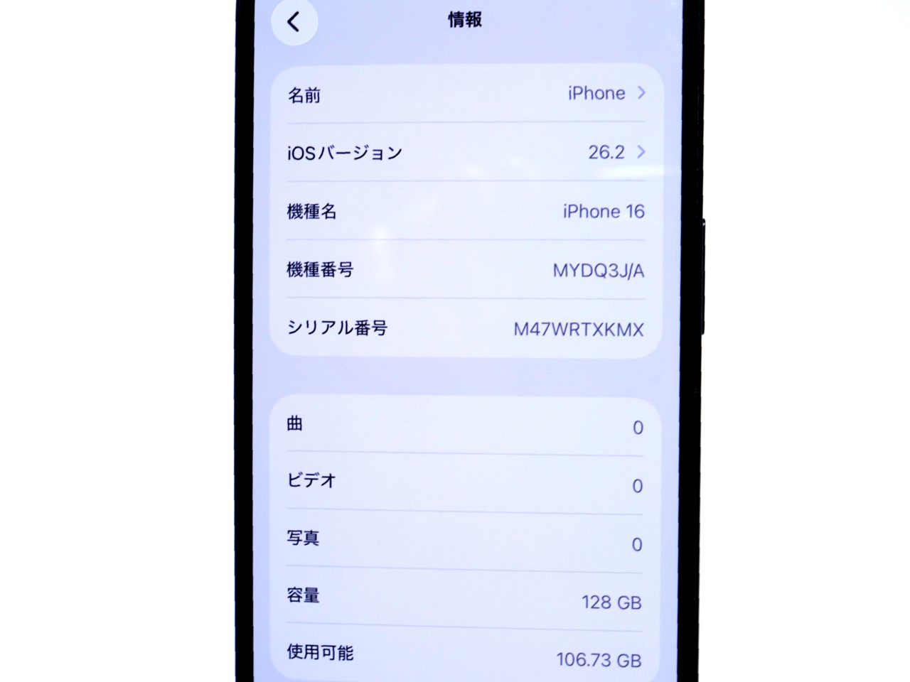 APPLE [USED]u059839 iPhone16 128GB SIMフリー[ブラック] の 商品仕様1: