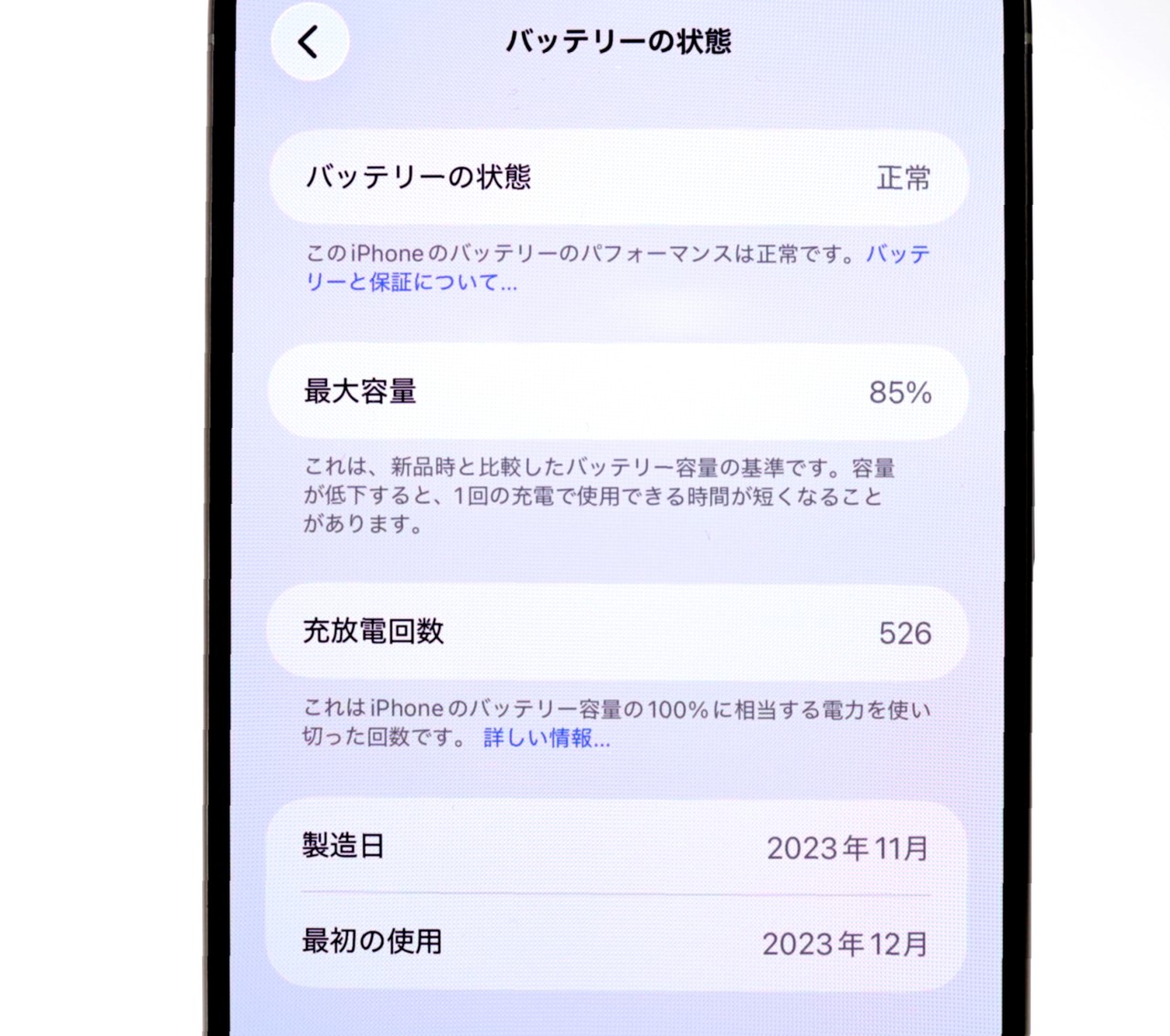 バッテリー最大容量=85%です。