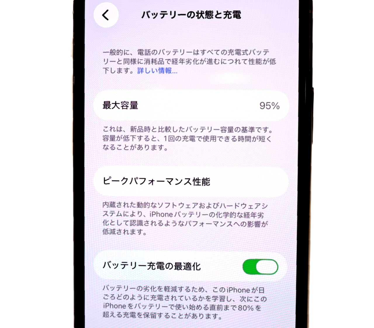 バッテリー最大容量=95%