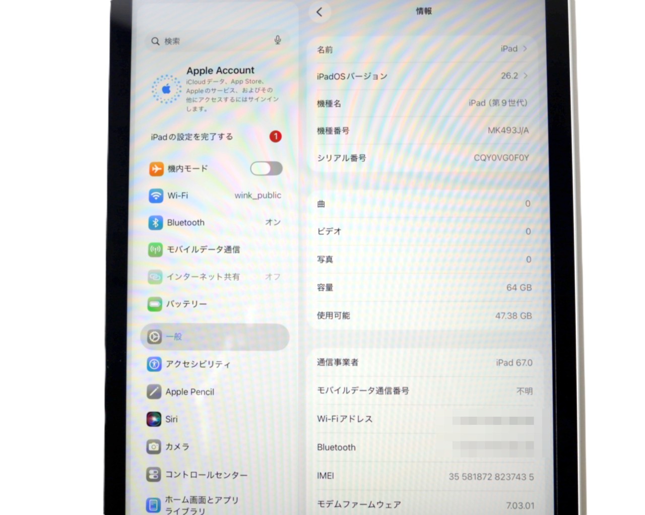 APPLE [USED]u059894 iPad 9th 64GB MK493J/A の 商品仕様1: