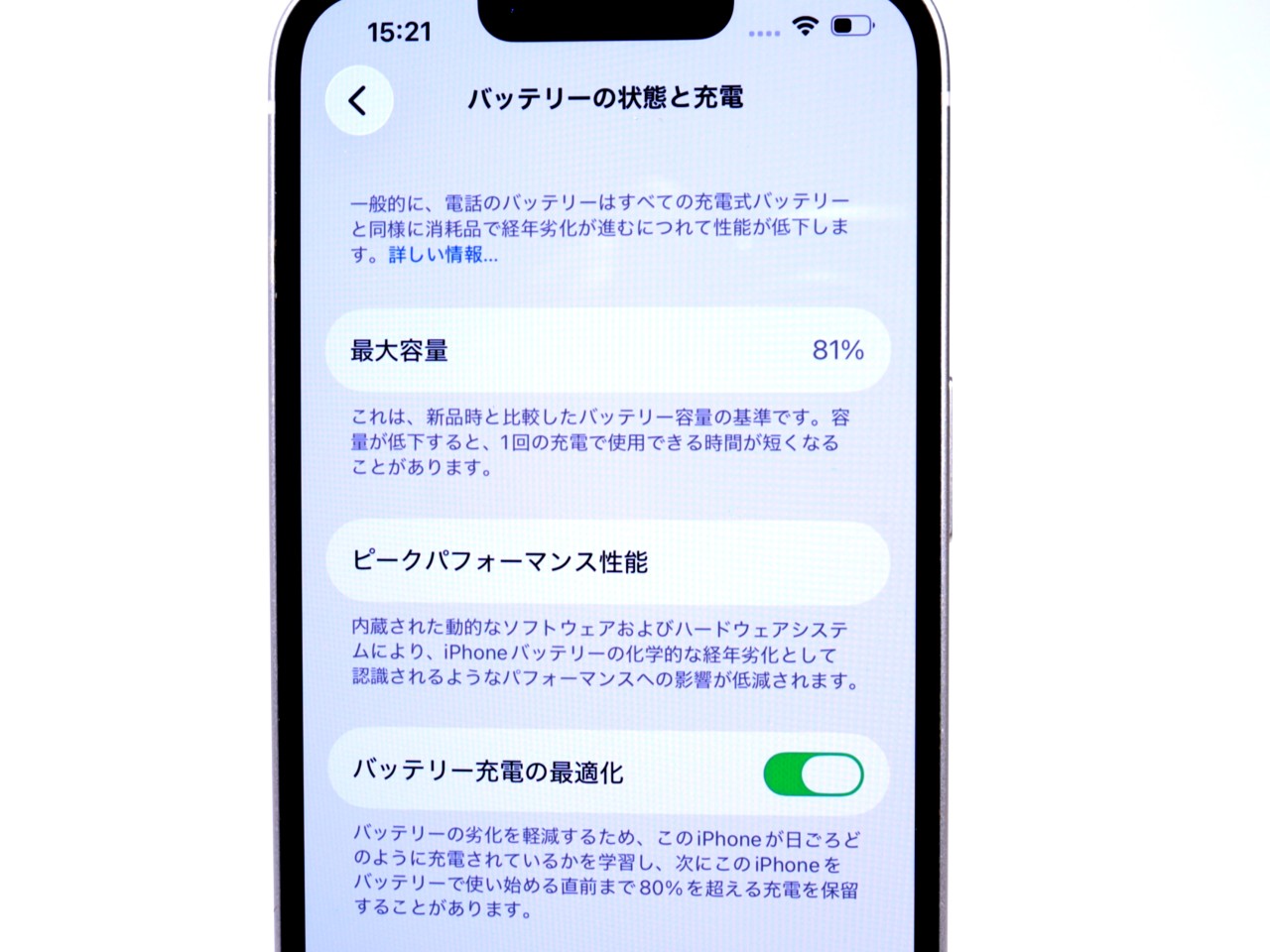 バッテリー最大容量=81%です。