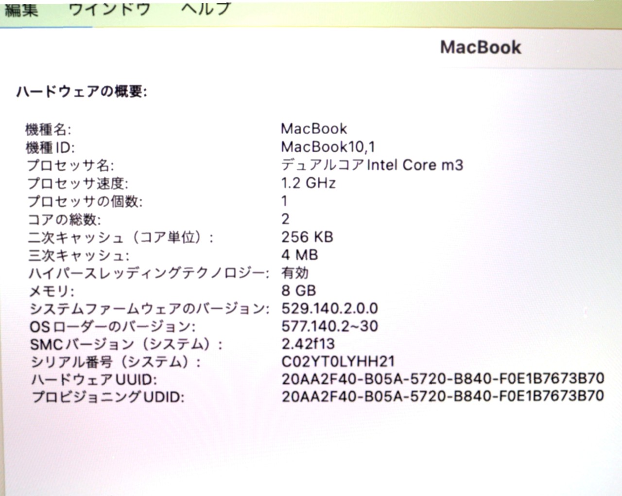 CPU : Core m3 1.2GHz/2コア