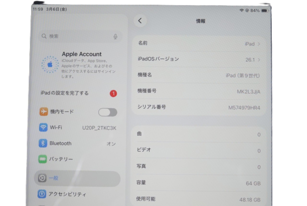 APPLE [USED]u059973 iPad 9th 64GB MK2L3J/A の 商品仕様1: