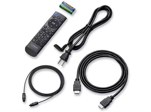 付属品 : リモコン、単4形乾電池×2(リモコン動作確認用)、電源ケーブル、HDMIケーブル(1.5m)×1、光デジタル音声ケーブル(1.5m)×1
