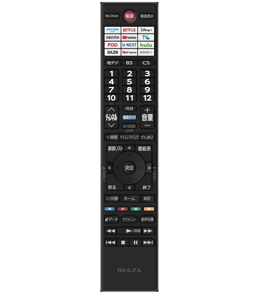 付属品 : 単4形乾電池(2本)/レグザリモコン/スタンド1式(スタンド 2個、M4ネジ 4本) / 電源コード(1.55m) 1本 / 転倒防止用バンド 1本、転倒防止用ネジ(短) 1本・ネジ(長) 1本 / 取扱説明書 1部、スタンド取付説明書 1部 / miniB-CASカード 1枚