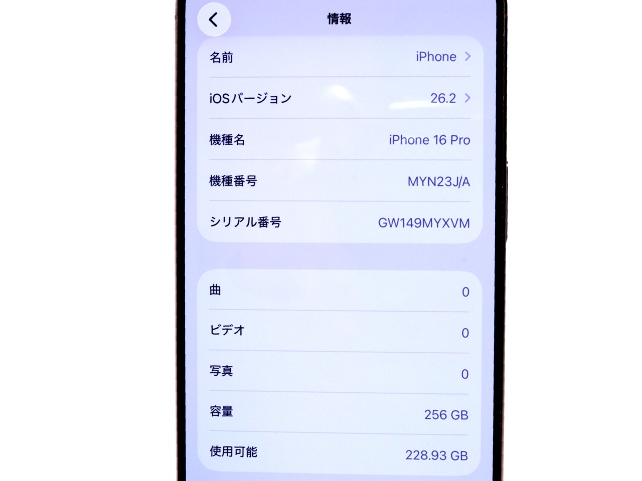 APPLE [USED]u060015 iPhone16 Pro 256GB SIMフリー [デザートチタニウム] の 商品仕様1: