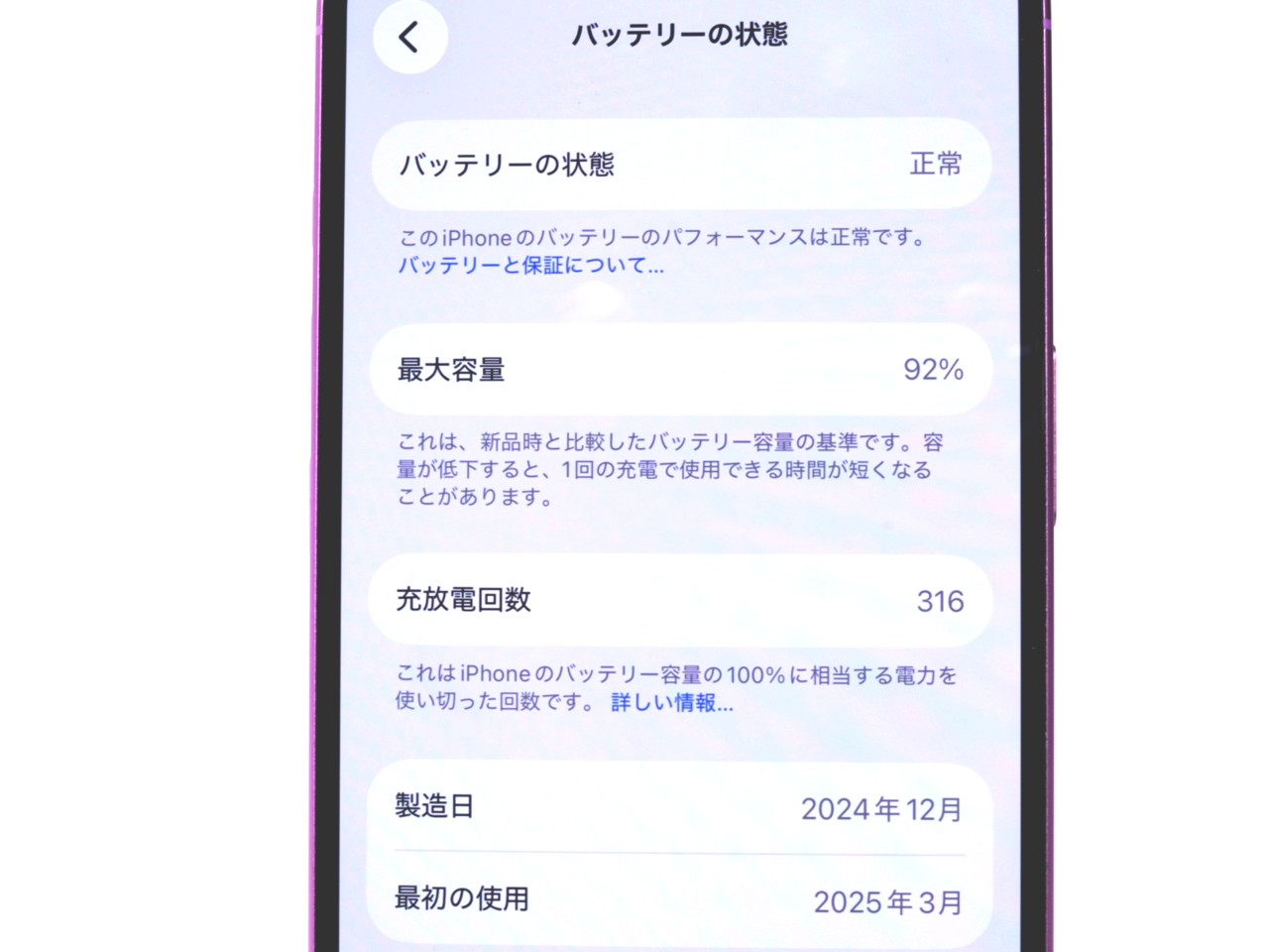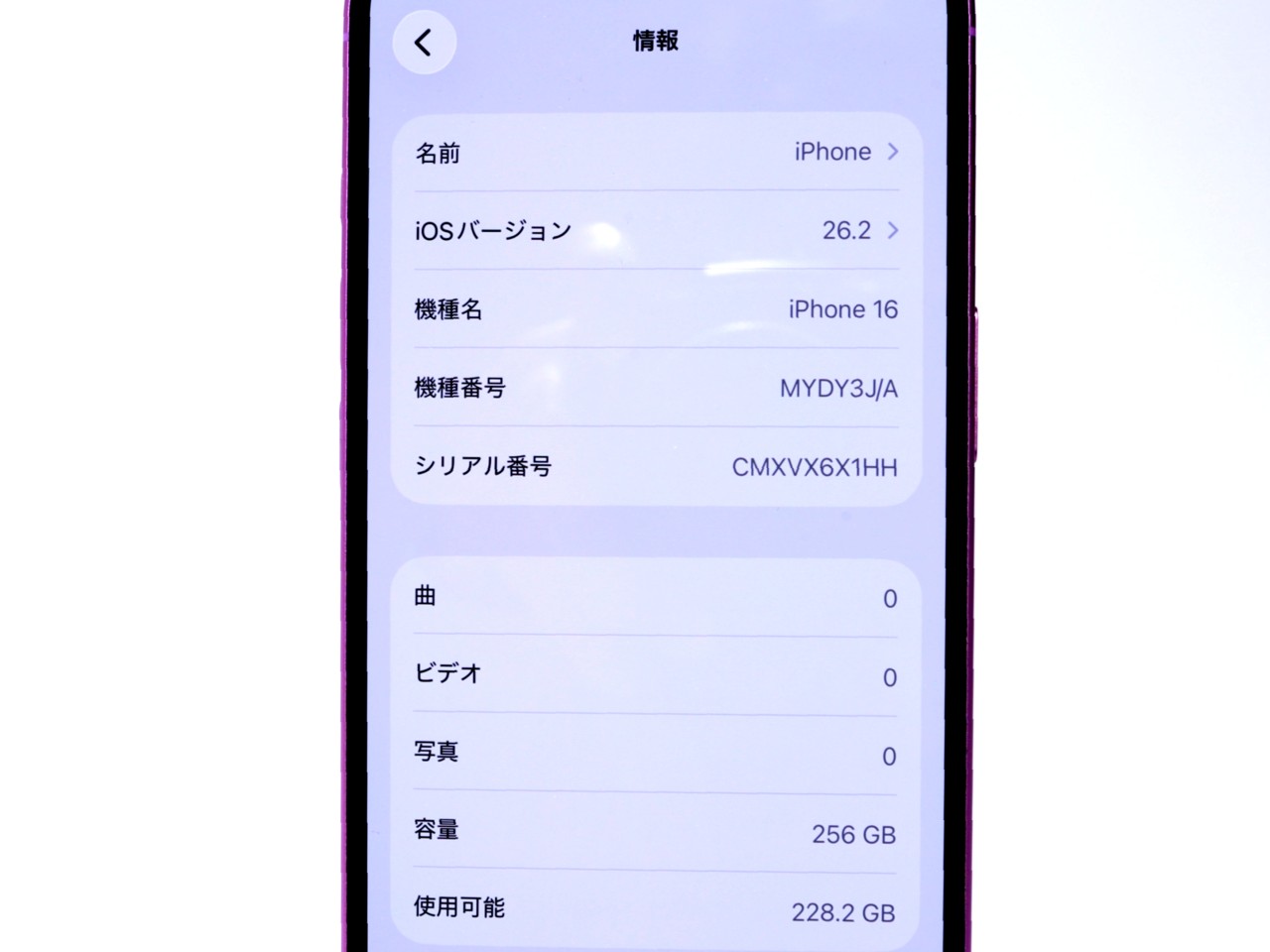 APPLE [USED]u060027 iPhone16 256GB SIMフリー [ピンク] の 商品仕様1: