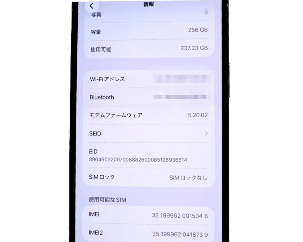 内蔵メモリ : 256GB