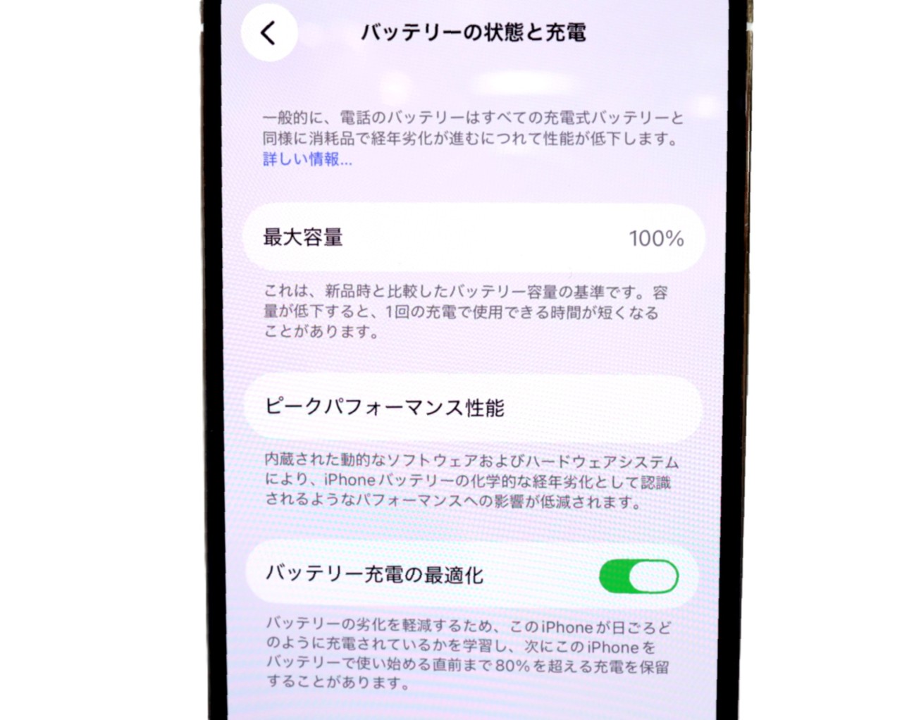 バッテリー最大容量=100%です。