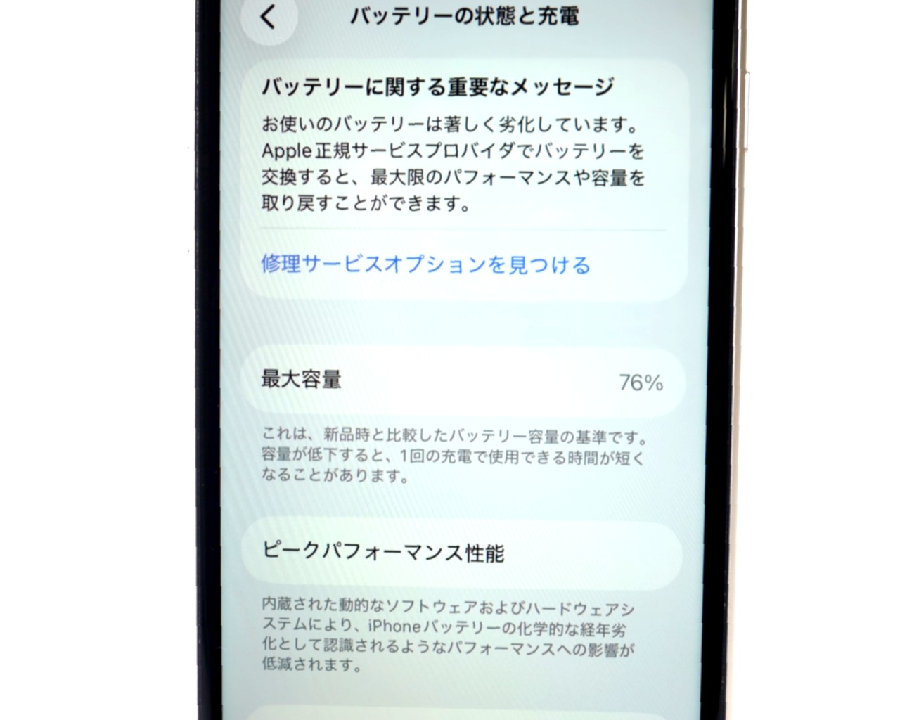 バッテリー最大容量=76%です。