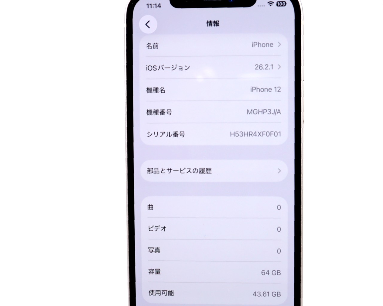 APPLE [USED]u060175 iPhone12 64GB SIMフリー [ホワイト] 修理品 の 商品仕様1: