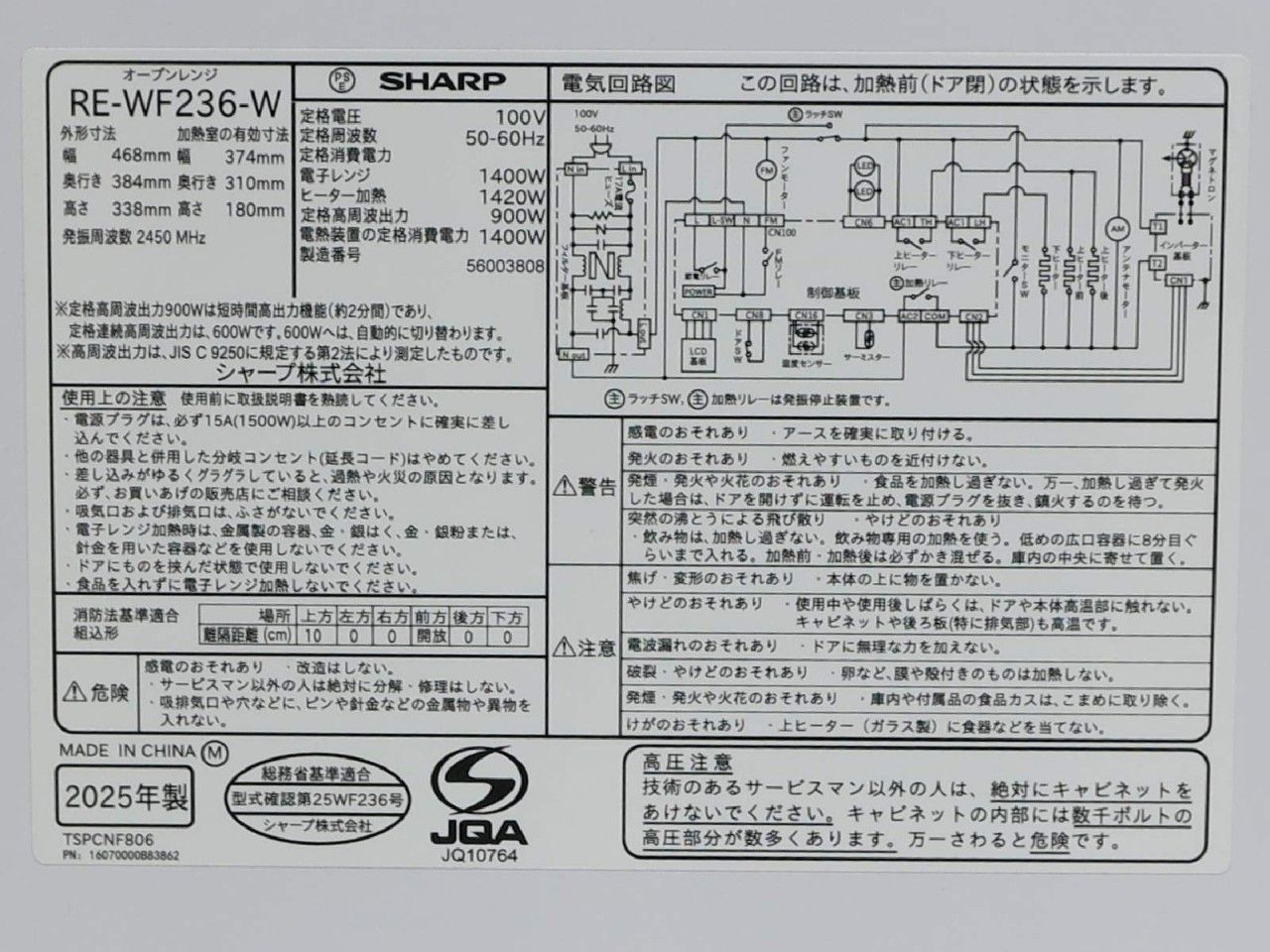 SHARP [USED]u060186 RE-WF236-W の 商品仕様1: