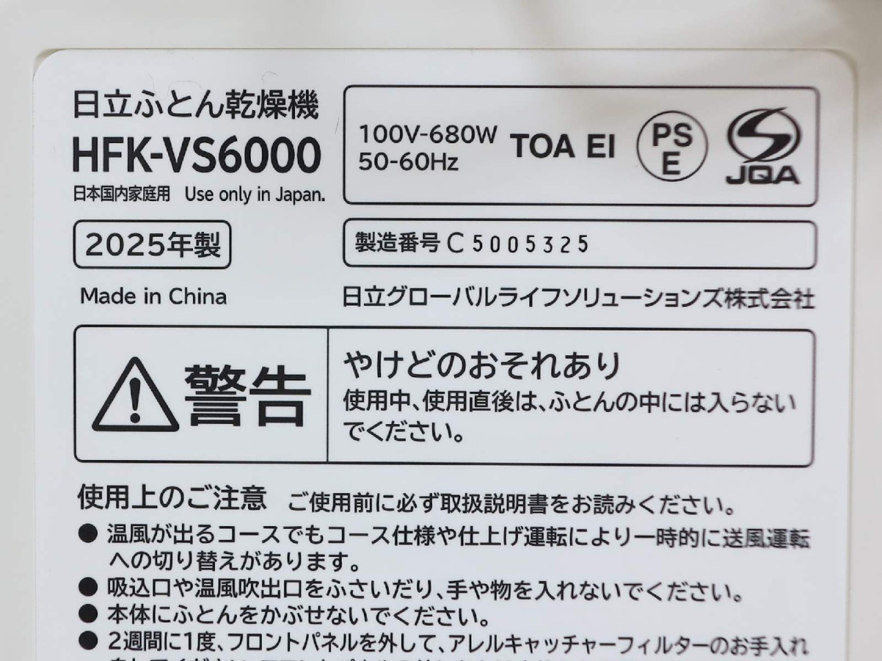 HITACHI [USED]u060187 HFK-VS6000-C の 商品仕様1: