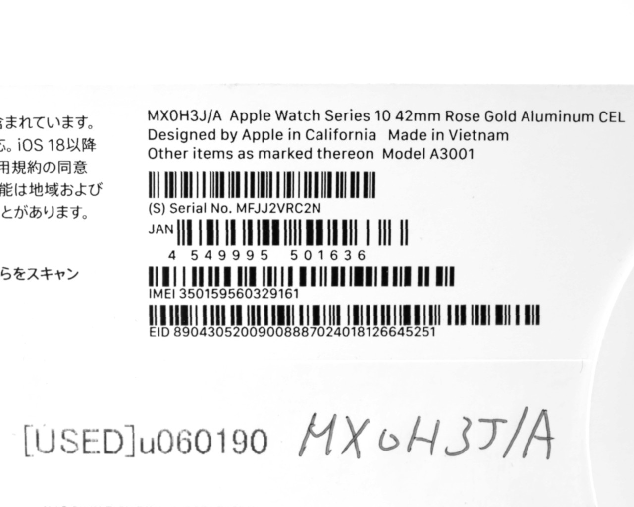 APPLE [USED]u060190 Apple Watch 10 GPS+Cellular 42mm MX0H3J/A Rose Gold/ Starlight Pink Nike Sport Loop の 商品仕様1: