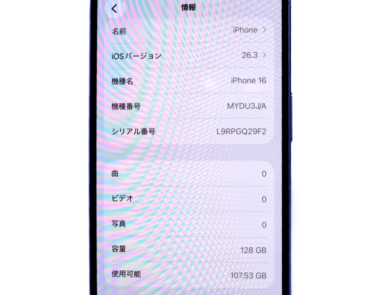 APPLE [USED]u060201 iPhone16 128GB SIMフリー [ウルトラマリン] の 商品仕様1: