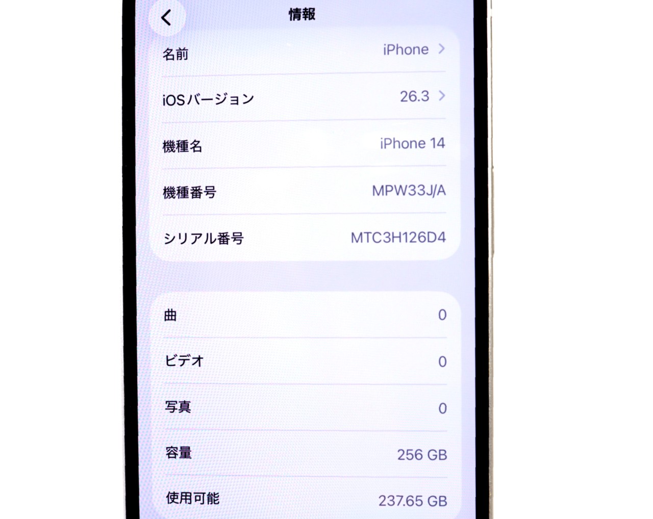 APPLE [USED]u060234 iPhone14 256GB SIMフリー [スターライト] の 商品仕様1: