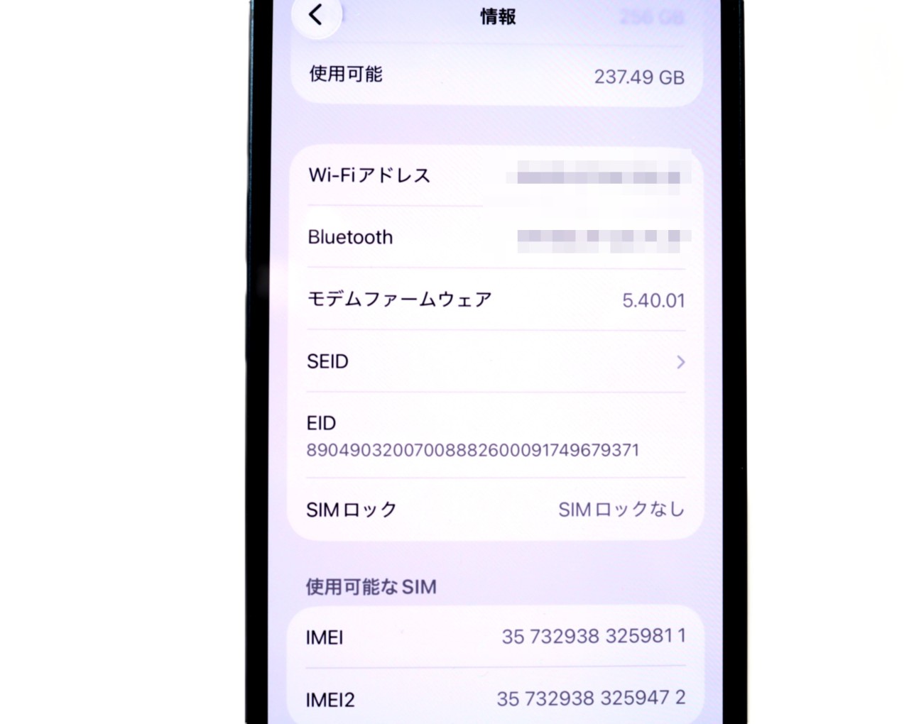 内蔵メモリ : 256GB