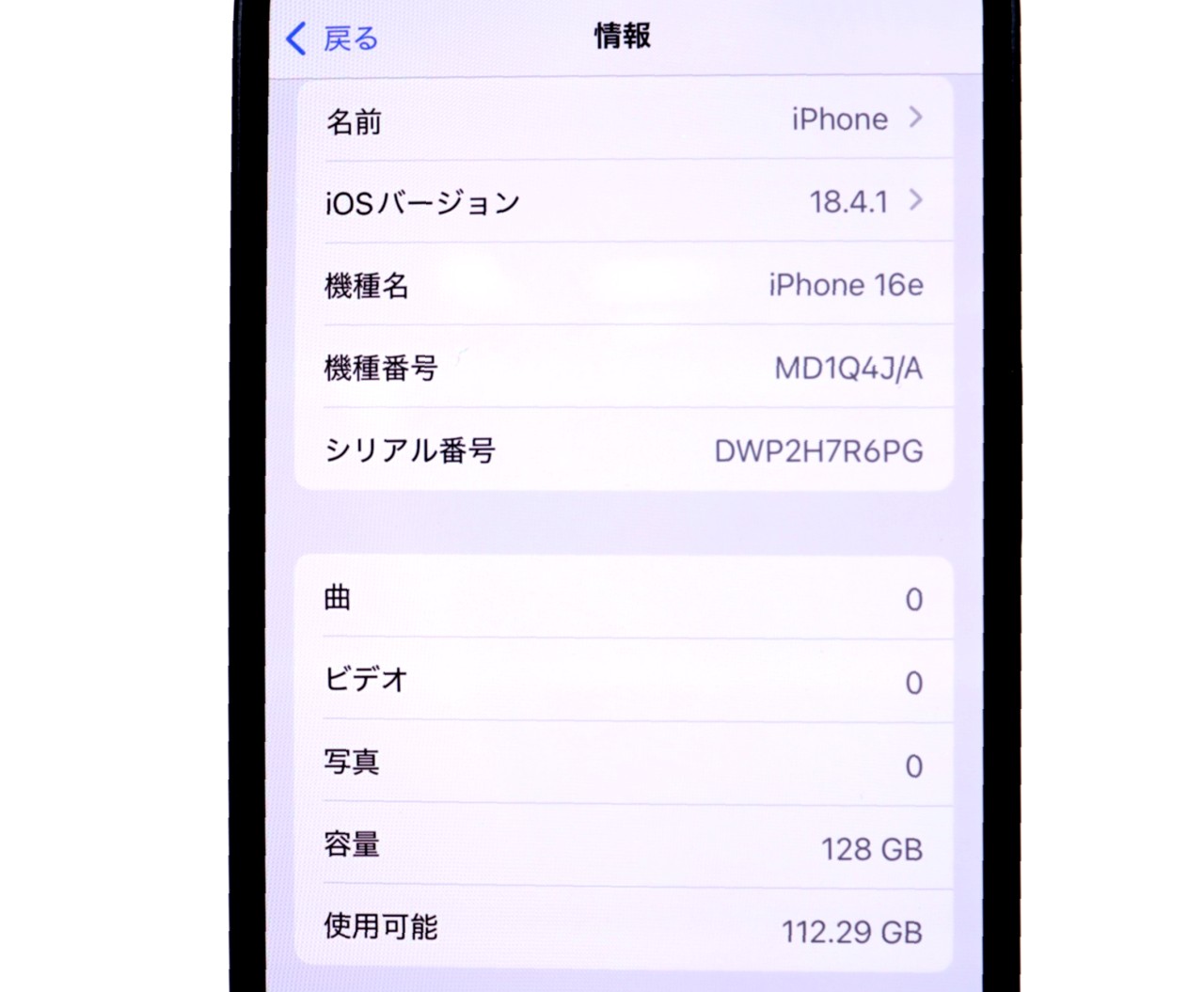APPLE [USED]u060285 iPhone16e 128GB SIMフリー [ブラック] の 商品仕様1: