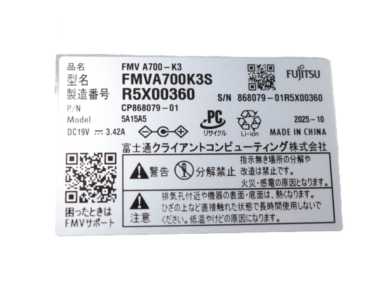 FUJITSU [中古]WindowsノートPC FMV Note A A700-K3 2025年10月発表モデル
