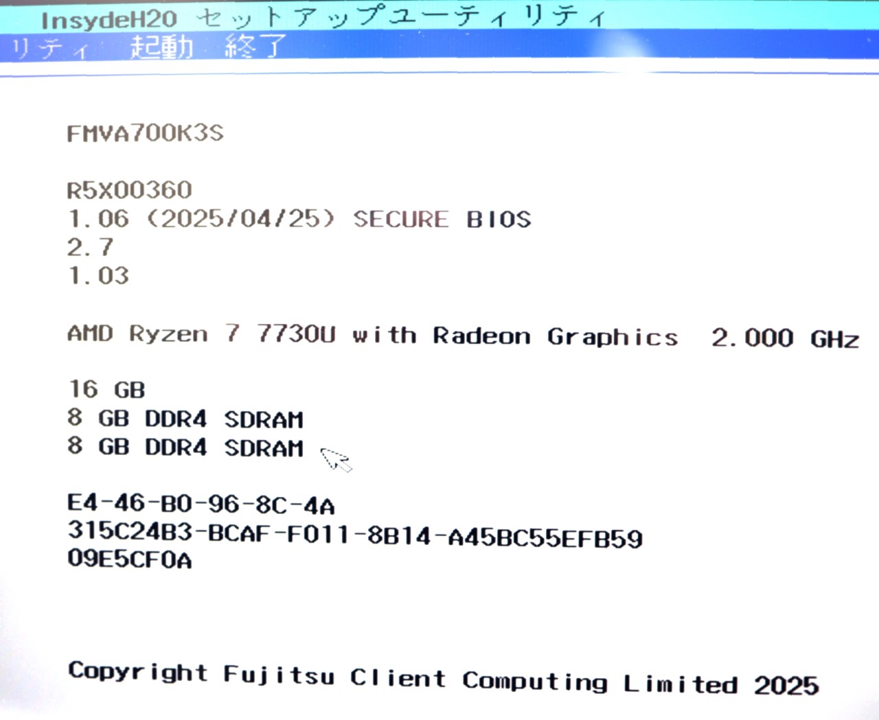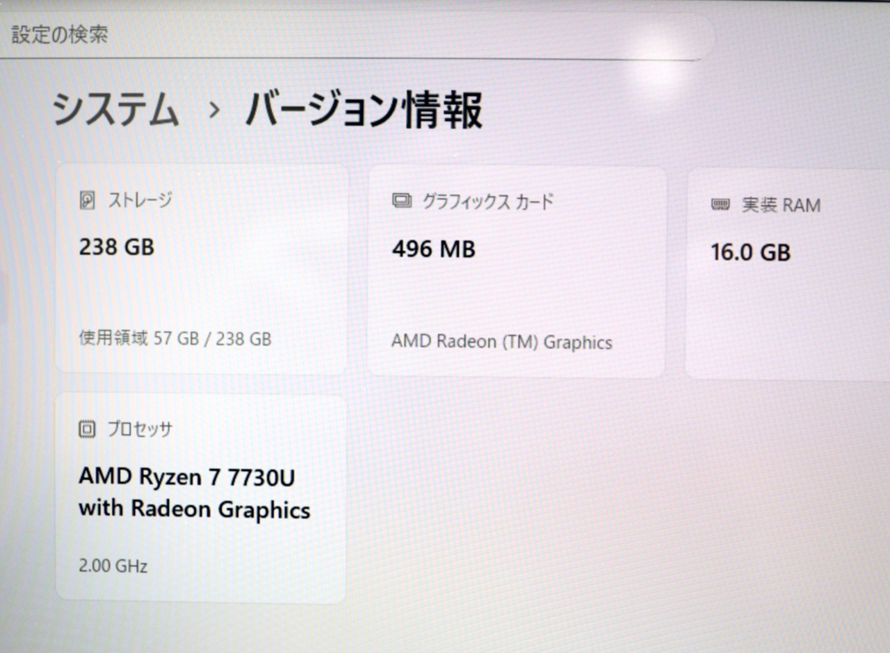 CPU : AMD Ryzen 7 7730U 2GHz/8コア