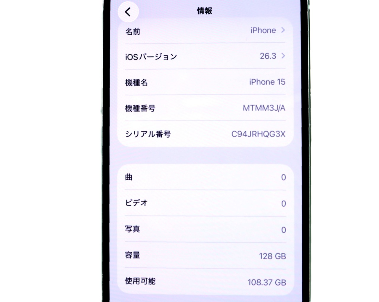 APPLE [USED]u060337 iPhone15 128GB SIMフリー [グリーン] の 商品仕様1: