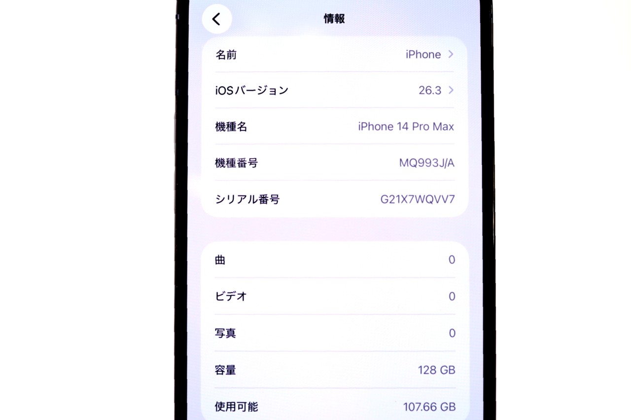 APPLE [USED]u060345 iPhone14 ProMax 128GB SIMフリー [ディープパープル] の 商品仕様1: