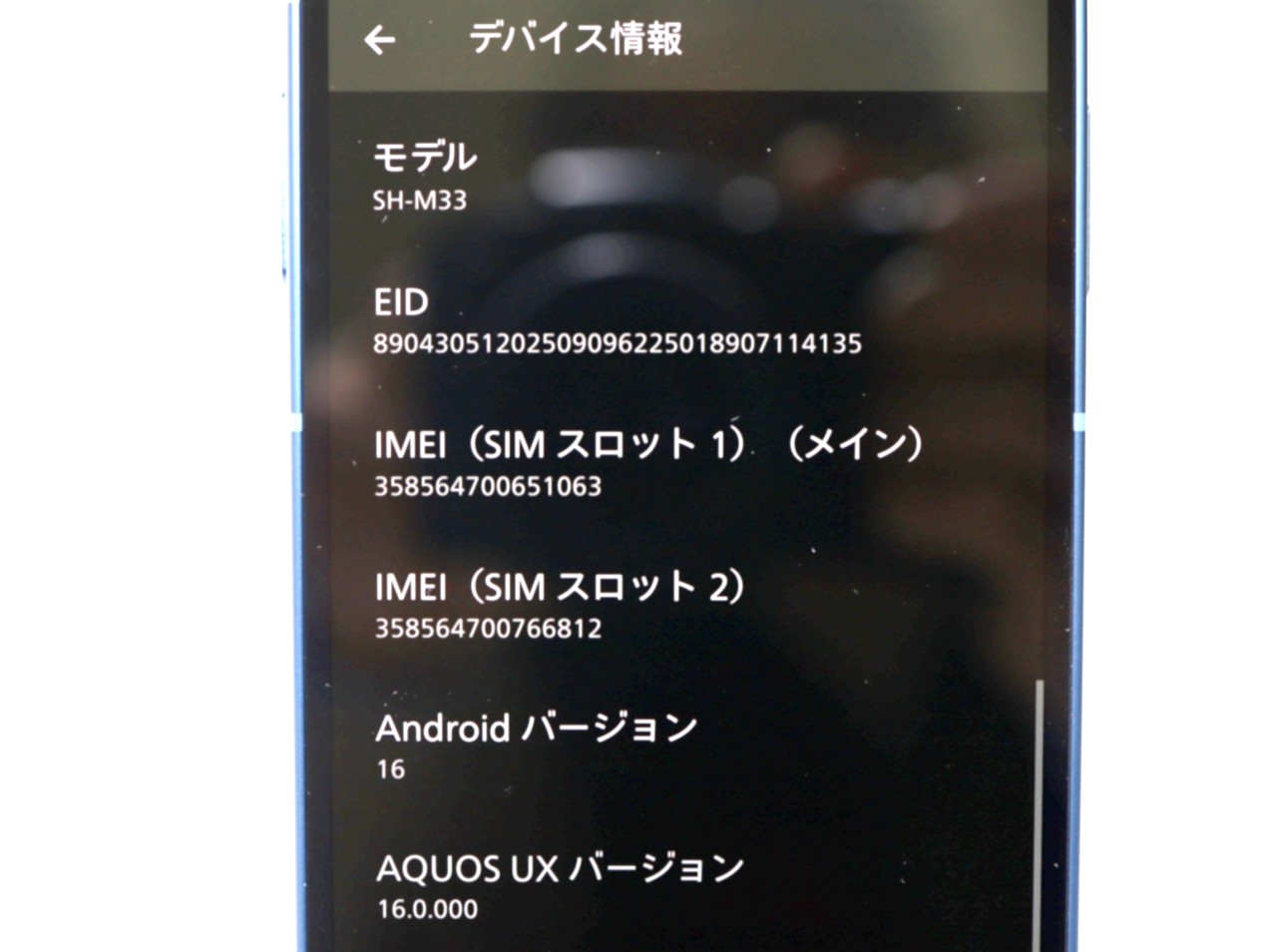 SHARP [USED]u060364 AQUOS sense10 SH-M33 128GB [デニムネイビー] の 商品仕様1: