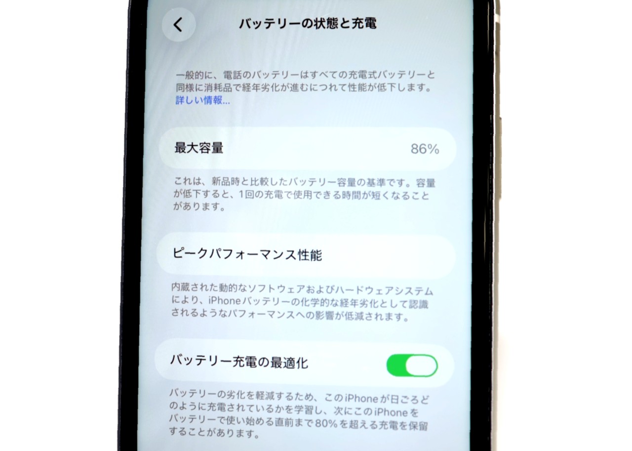 バッテリー最大容量=86%です。