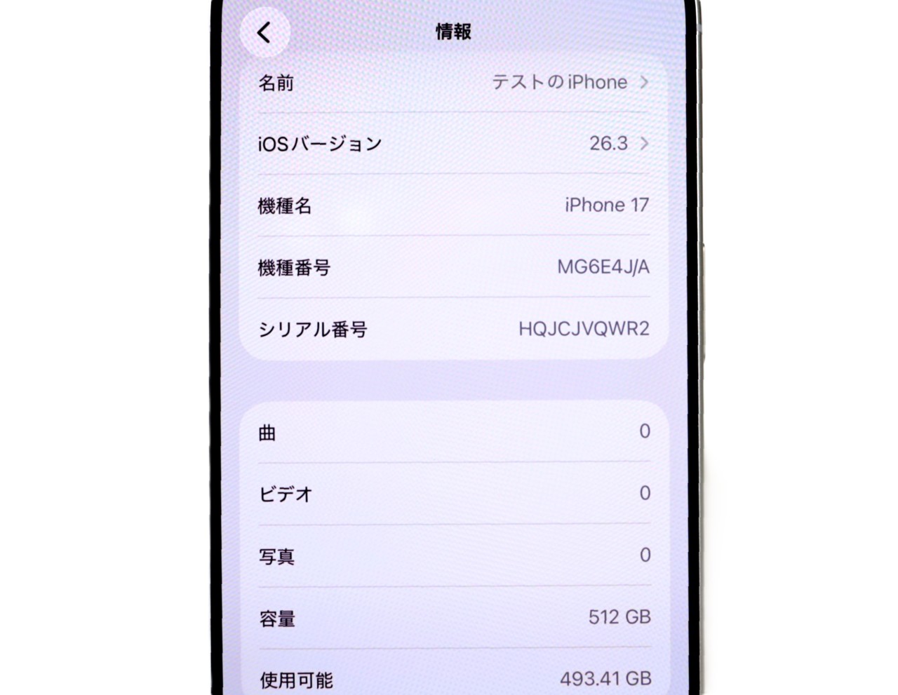 APPLE [USED]u060419 iPhone17 512GB SIMフリー [ホワイト] の 商品仕様1: