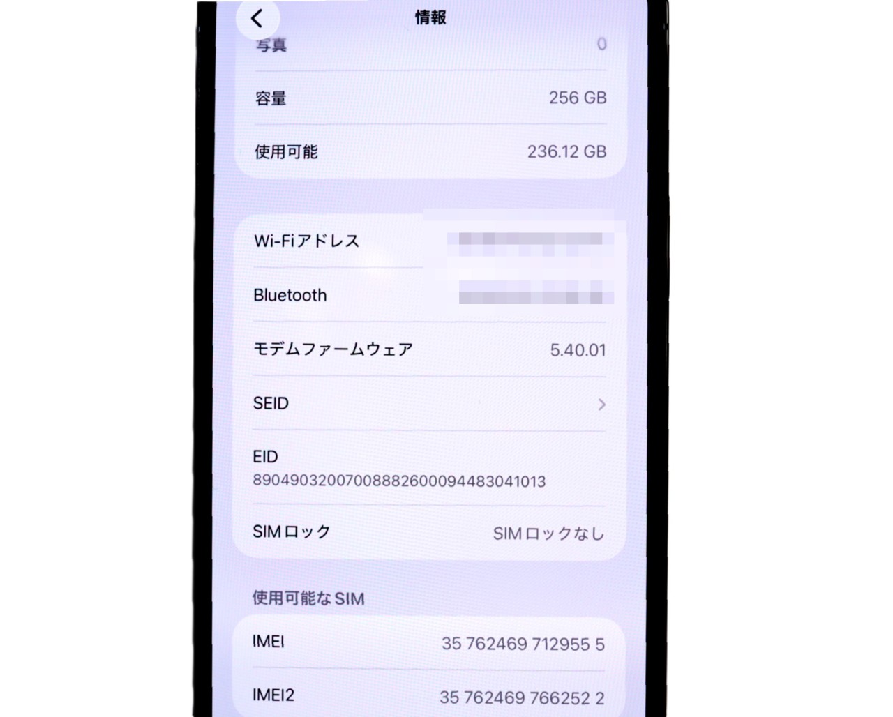 内蔵メモリ : 256GB