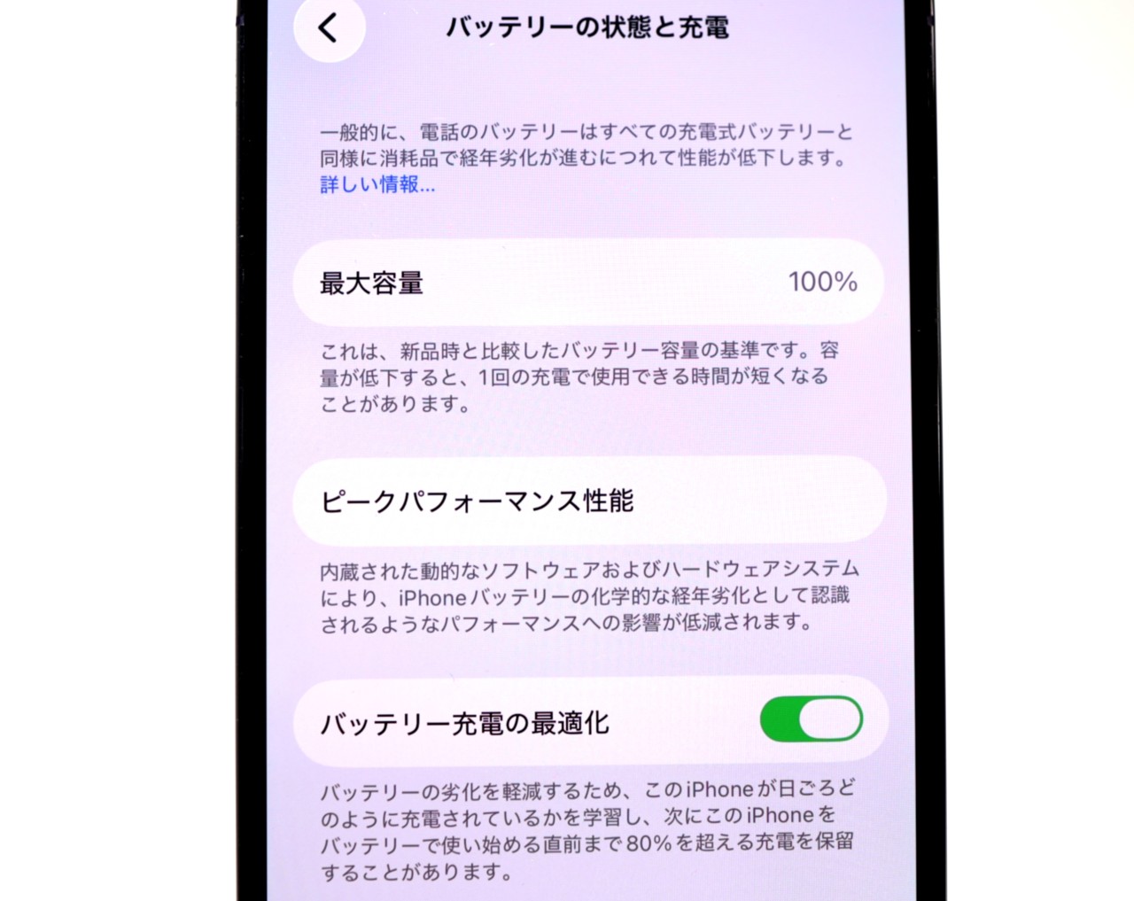 バッテリー最大容量=100%です。