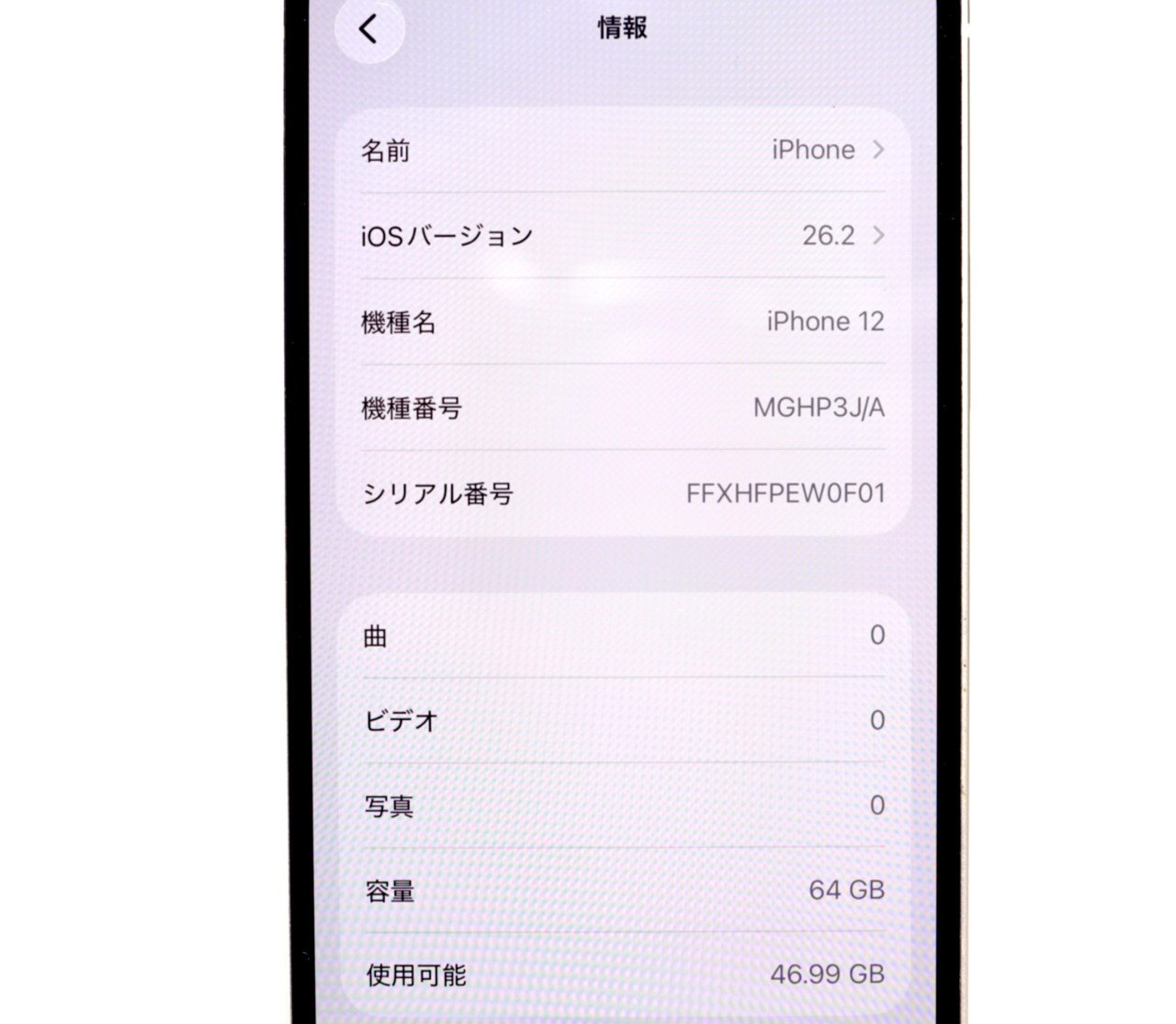 APPLE [USED]u060479 iPhone12 64GB SIMフリー [ホワイト] の 商品仕様1: