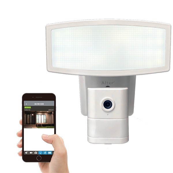カメラ付きLEDセンサーライト 照明機能による防犯と専用アプリで映像確認と録画が可能