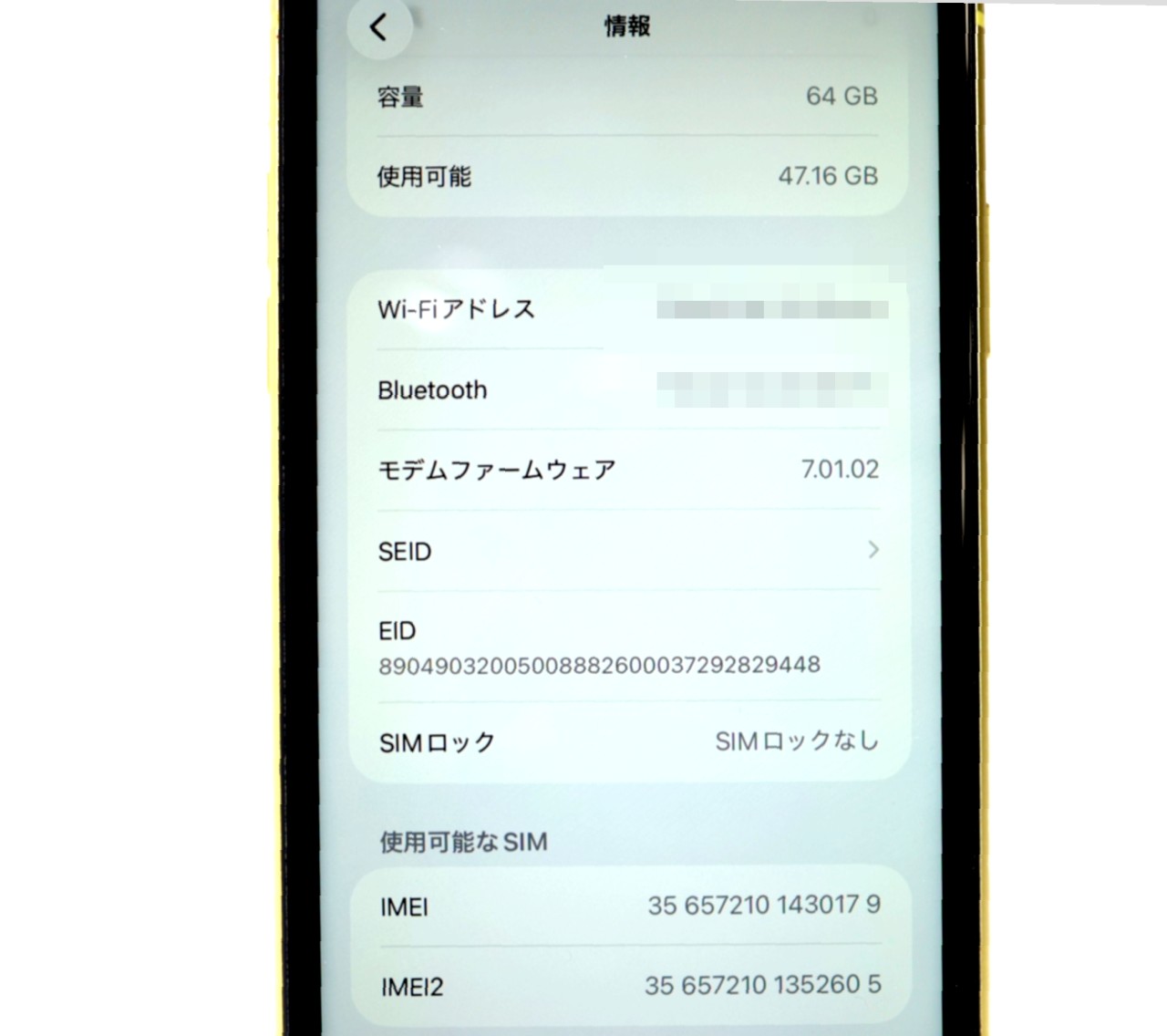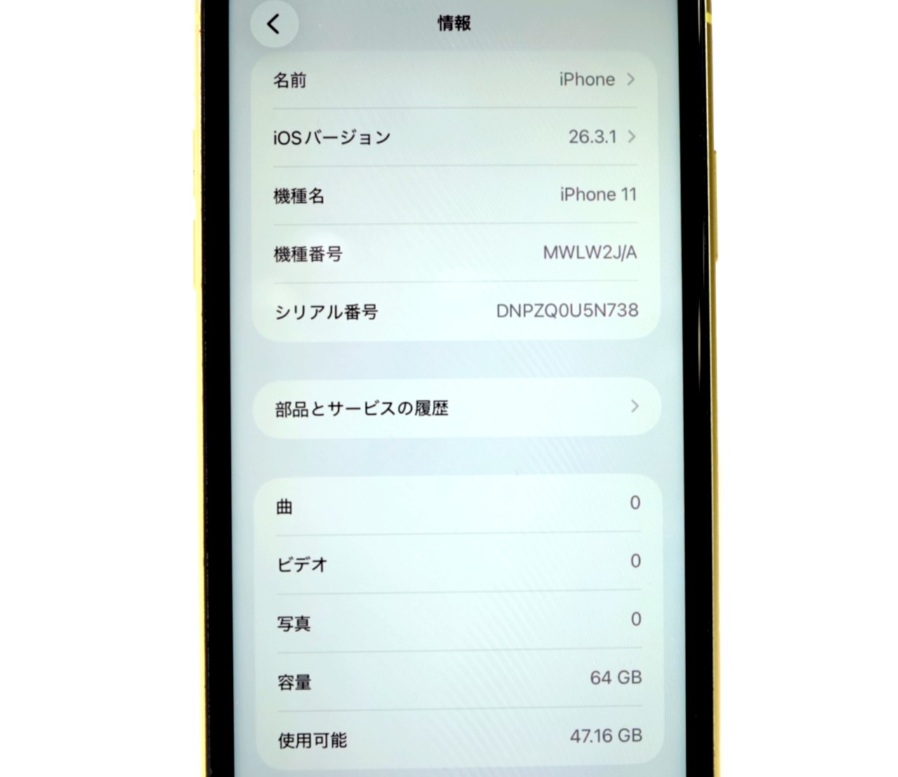 APPLE [USED]u060503 iPhone11 64GB SIMフリー [イエロー] の 商品仕様1: