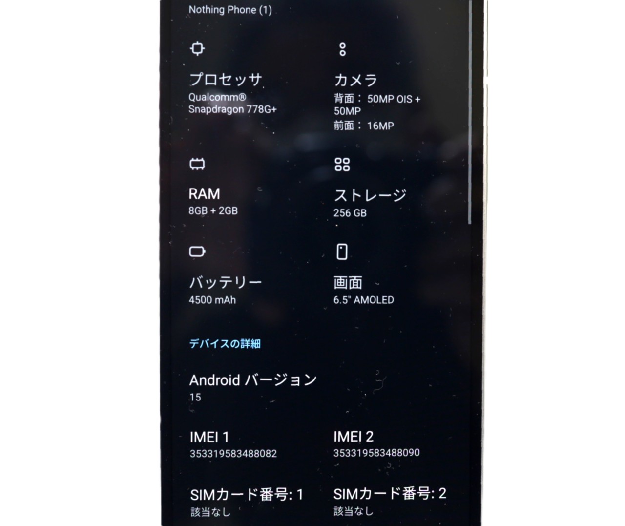 NOTHING [USED]u060505 Phon(1)256GB(RAM 8GBモデル)ホワイト の 商品仕様1: