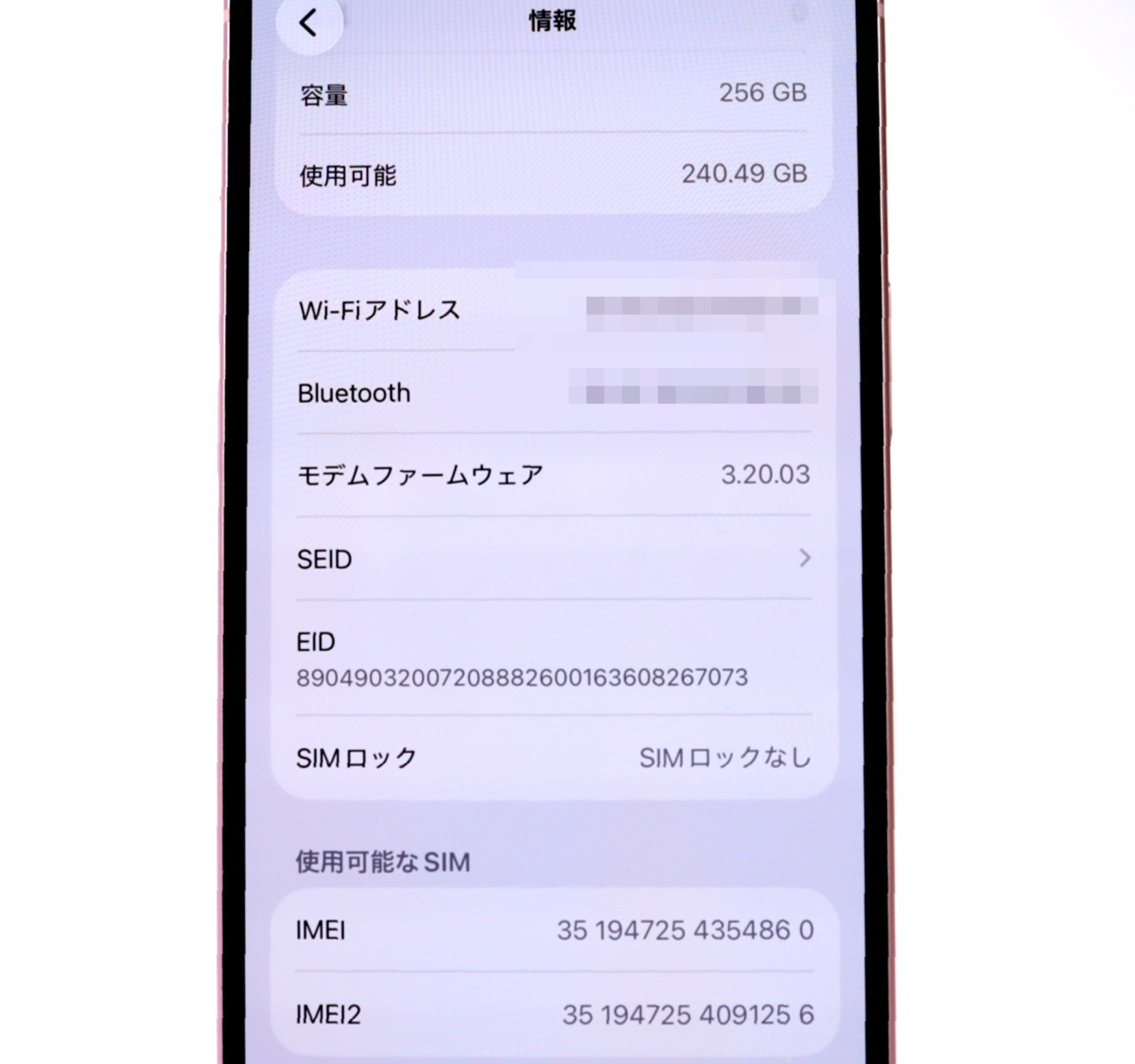 APPLE [USED]u060519 iPhone15 256GB SIMフリー [ピンク] の 商品仕様1: