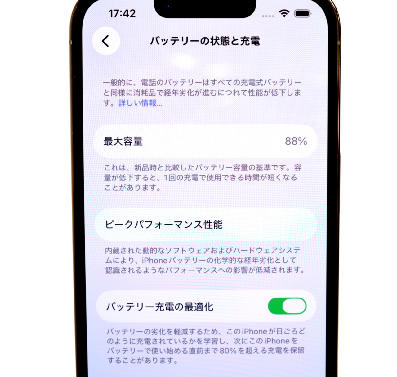 バッテリー最大容量=88%