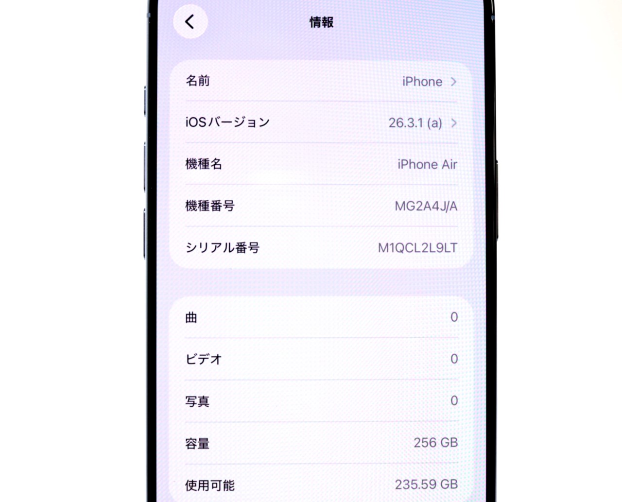 APPLE [USED]u060557 iPhoneAir 256GB SIMフリー [スカイブルー] の 商品仕様1: