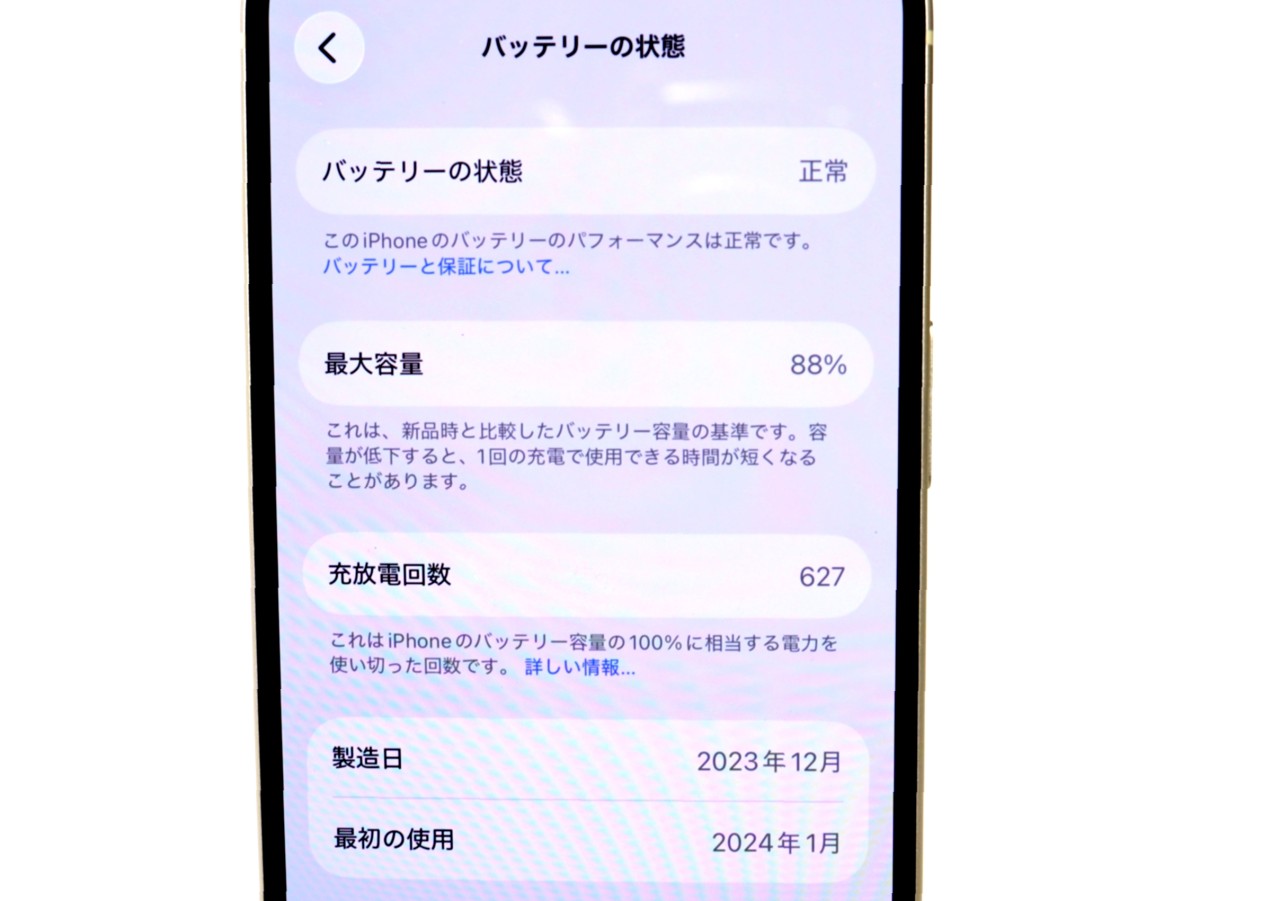 バッテリー最大容量=88%